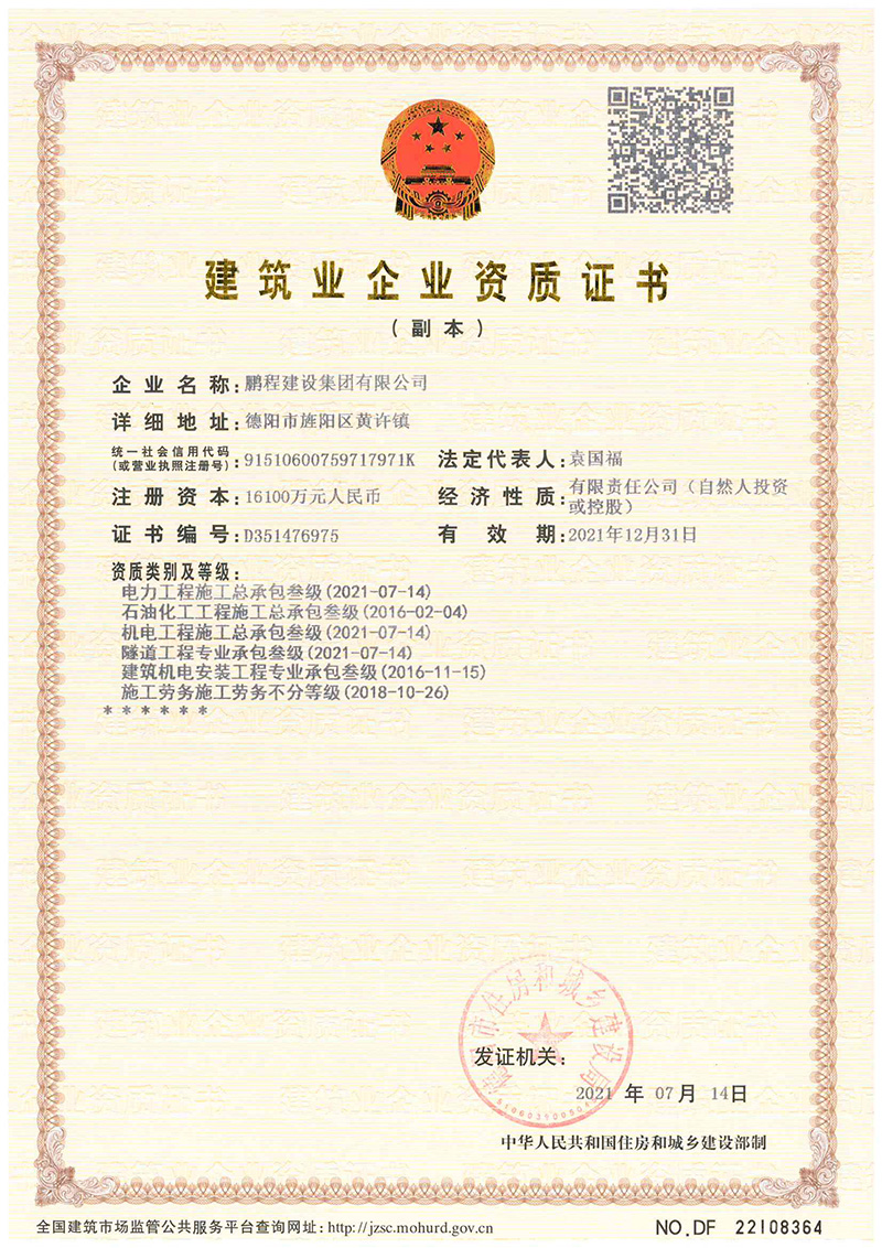 鹏程建设集团有限公司 电话:0838-2501775 地址:四川省德阳市岷江西路二段55号新里程·尊域1栋3单元27楼
